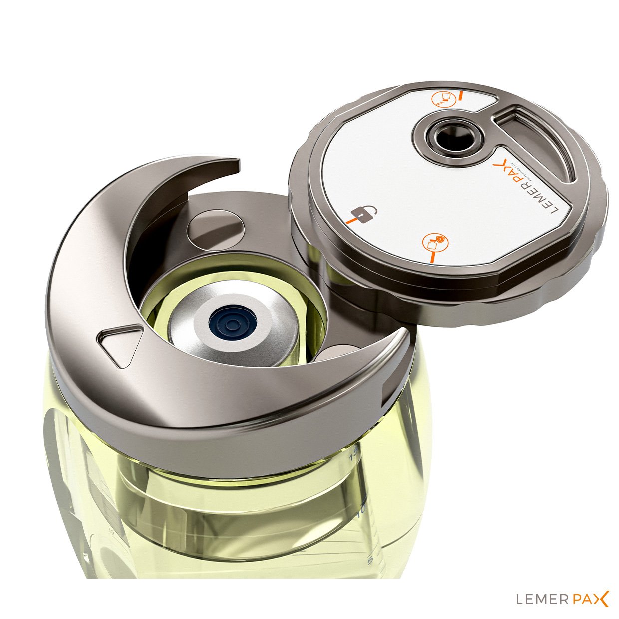 - The innovative design of the magnetic lid allows for easy, one-handed opening while ensuring that the vial shield remains securely locked in place. This design also completely isolates the preparation when not in use and prevents any risk of leakage. The opening, with a selectable diameter of 10 or 2 mm, provides access to the vial septum and allows solution sampling using a syringe with a hypodermic needle.