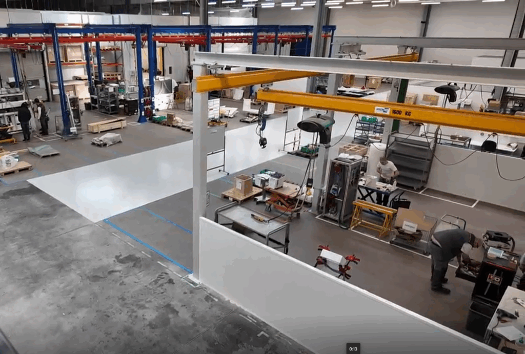 La plataforma técnica, diseñada para cumplir con los requisitos reglamentarios específicos del sector, alberga también una sala blanca de 180 m², una sala gris de 210 m² y una losa reforzada de 230 m² equipada con dos puentes grúa —de 20 y 5 toneladas— destinados a la manipulación de las imponentes celdas blindadas. Espacios claramente delimitados y dedicados cada uno a una actividad específica ofrecen a los empleados un entorno de trabajo funcional. En 2016, Lemer Pax y sus 50 empleados se instalaron en La Chapelle-sur-Erdre. Diez años más tarde, los 150 empleados estarán reunidos en Carquefou a finales de 2025.