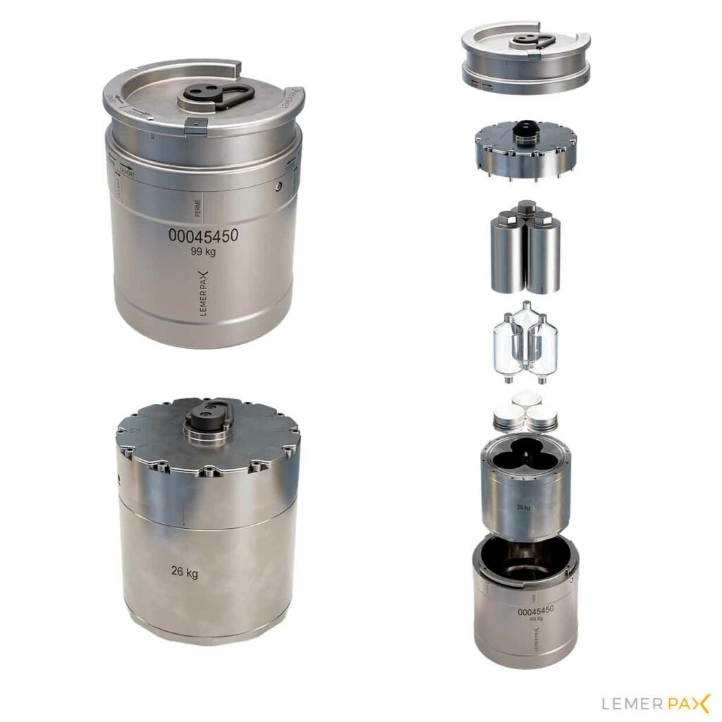 Lemer Pax proporciona un embalaje vacío que ha superado las pruebas de calificación para los bultos de tipo A según la norma de seguridad del OIEA – Reglamento de transporte de materiales radiactivos (Edición 2018). El bulto de tipo A permite confinar, durante la fase de transporte de materiales radiactivos, con el fin de proteger a las personas y al medio ambiente de la contaminación y de la exposición a las radiaciones de los radioisótopos: